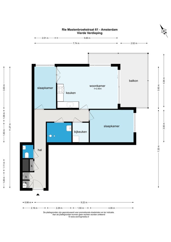 - De galerijflat heeft een woonoppervlakte van 69 m² en beschikt over 3 kamers, waarvan 2 slaapkamers;