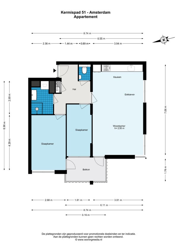 - De galerijflat heeft een woonoppervlakte van 62 m² en beschikt over 3 kamers, waarvan 2 slaapkamers;