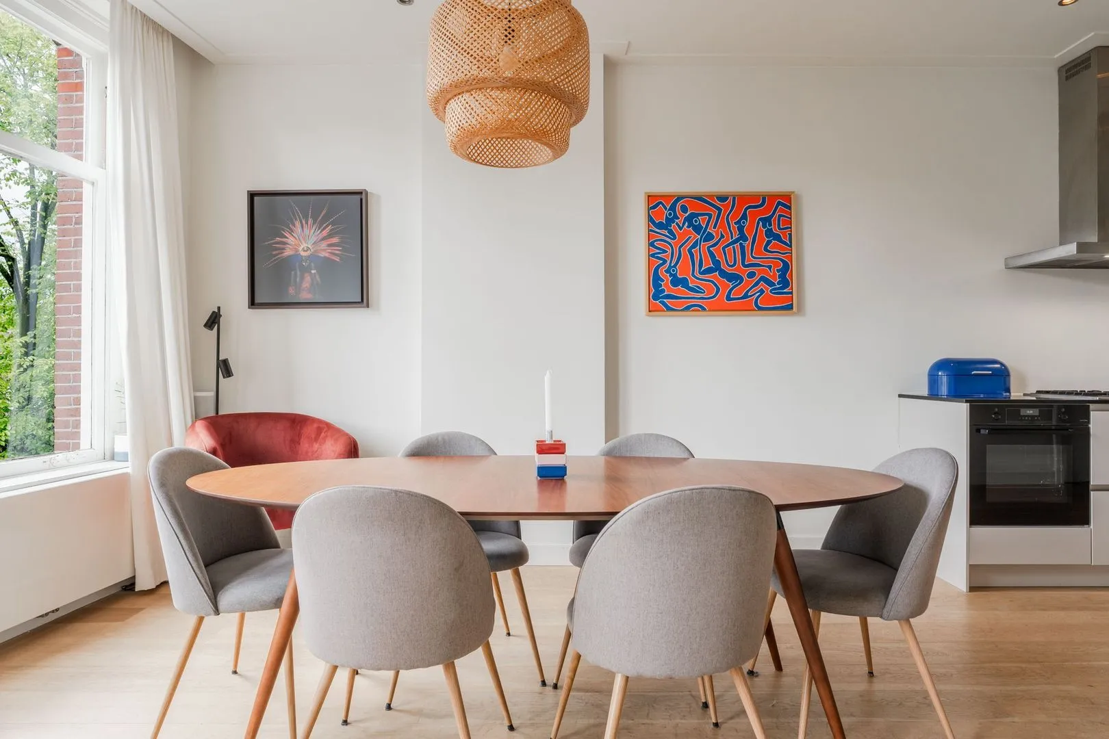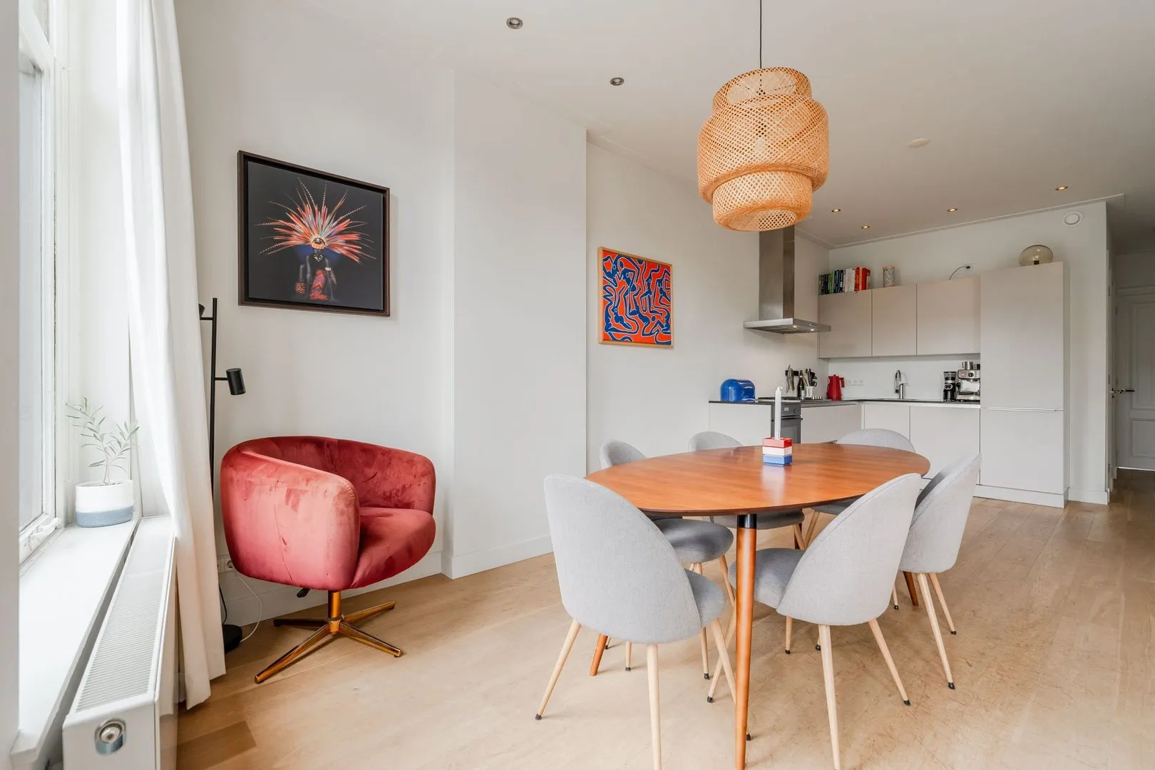 Op de tweede verdieping van een monumentaal pand ligt dit charmante driekamerappartement van circa 65 m², met uitzicht op het water van de Da Costakade. Na een complete renovatie in 2015 zijn authentieke details en modern wooncomfort samengevoegd. Hoge plafonds dragen bij aan een ruimtelijk gevoel, en de open keuken, nieuw in 2024, sluit mooi aan op de leefruimte. Dit sfeervolle appartement is instapklaar op een bijzondere locatie bij het water. Gelegen aan de rustige Da Costakade in het geliefde Oud-West, zijn voorzieningen zoals De Karavaan, De Hallen en de Kinkerstraat nabij. De indeling omvat een ruime hal, lichte woonkamer met balkon, moderne keuken, twee slaapkamers en een stijlvolle badkamer. Een ideaal appartement voor comfortabel en stijlvol wonen.