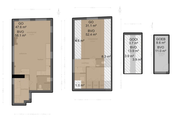 - De bovenwoning heeft een woonoppervlakte van 79 m² en beschikt over 3 kamers, waarvan 2 slaapkamers;