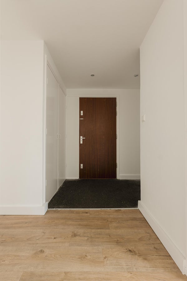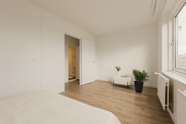 Op de vierde verdieping komt u binnen in een ruime hal die toegang biedt tot twee slaapkamers, een badkamer met inloopdouche, en een woonkamer. De keuken is praktisch ingericht met moderne apparatuur.