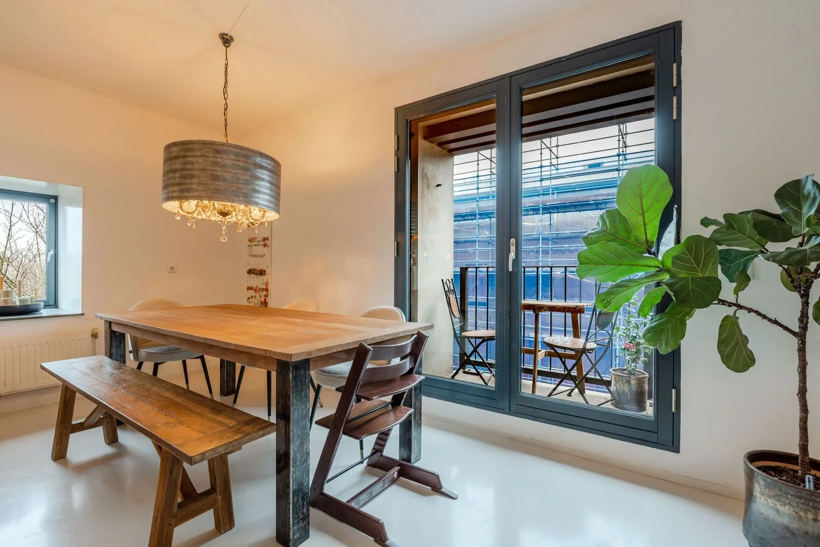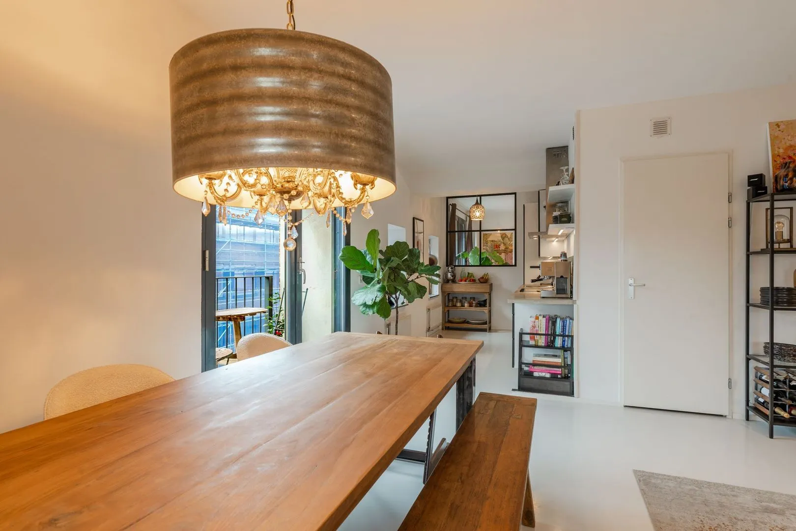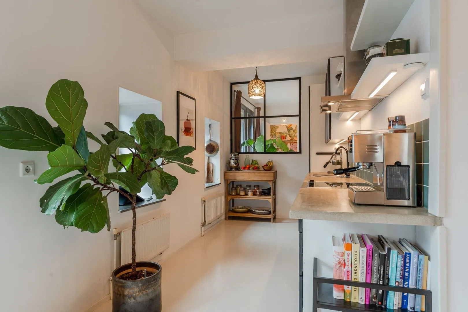Dit lichte 3-kamer hoekappartement in het iconische Pakhuis Oostenburg biedt een unieke combinatie van historisch karakter en modern comfort. Gelegen op de derde verdieping, prijken grote raampartijen en twee loggia’s die zorgen voor een overvloed aan natuurlijk licht. De ruime woonkamer met openslaande deuren leidt naar de eerste loggia, terwijl de halfopen keuken is voorzien van moderne inbouwapparatuur en een betonnen aanrechtblad.