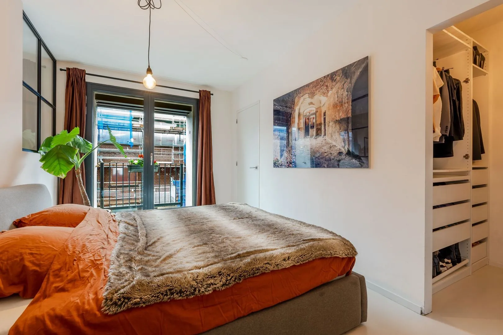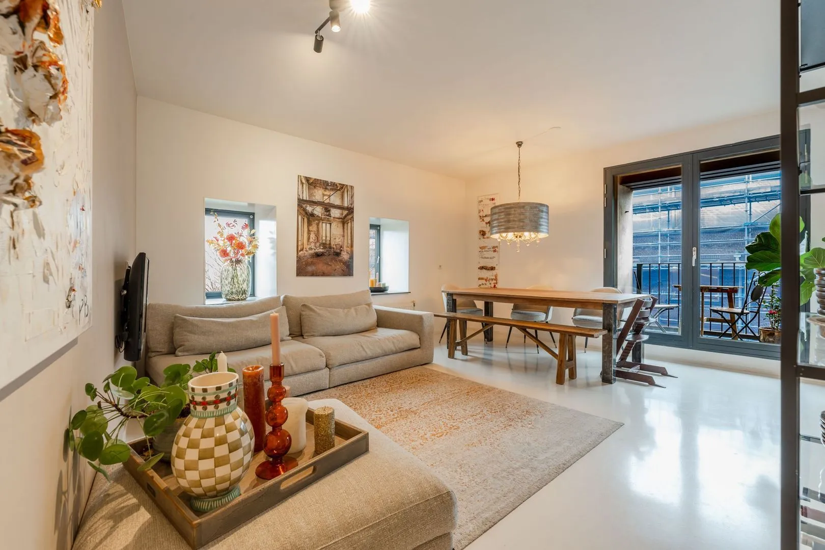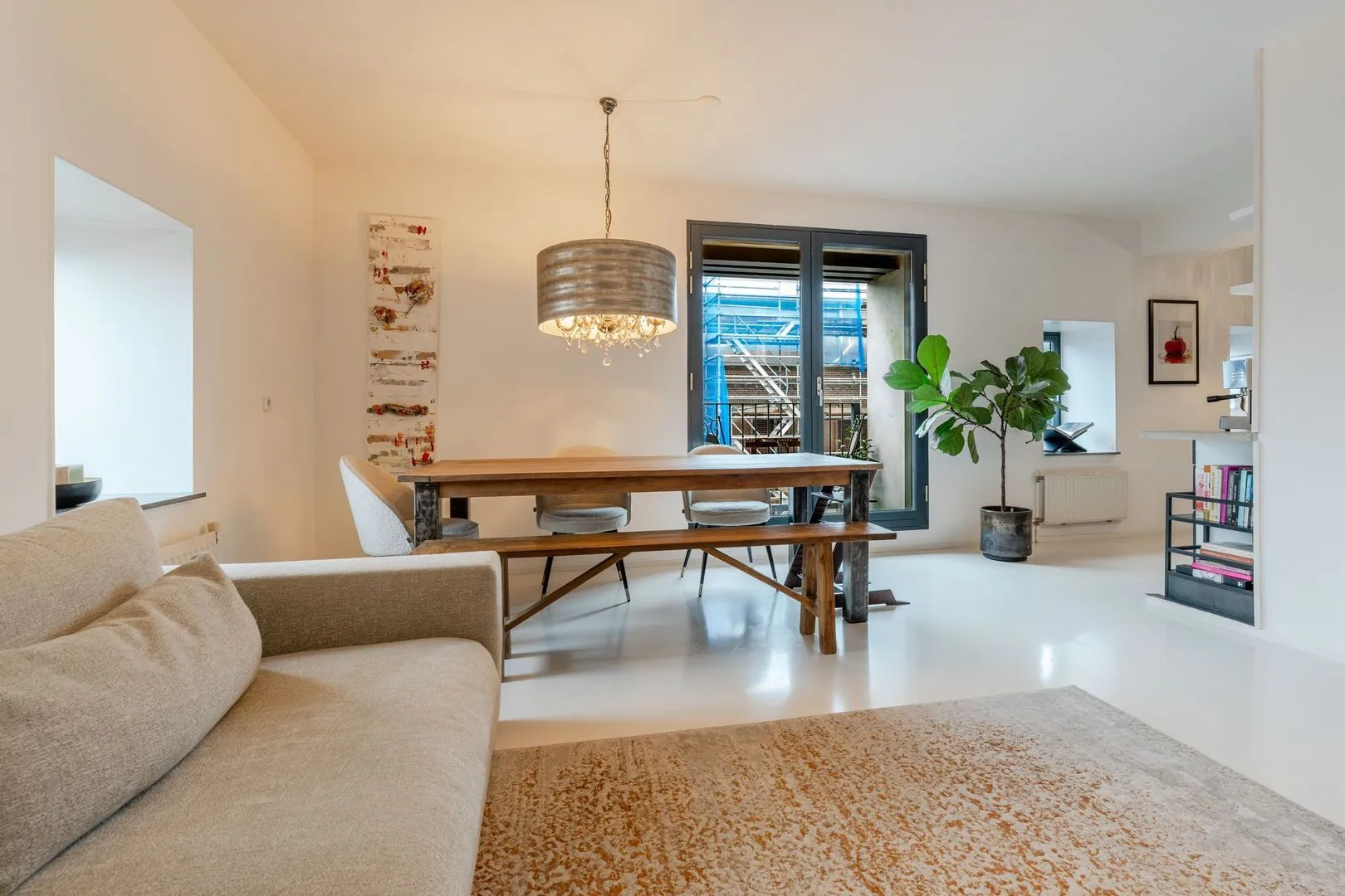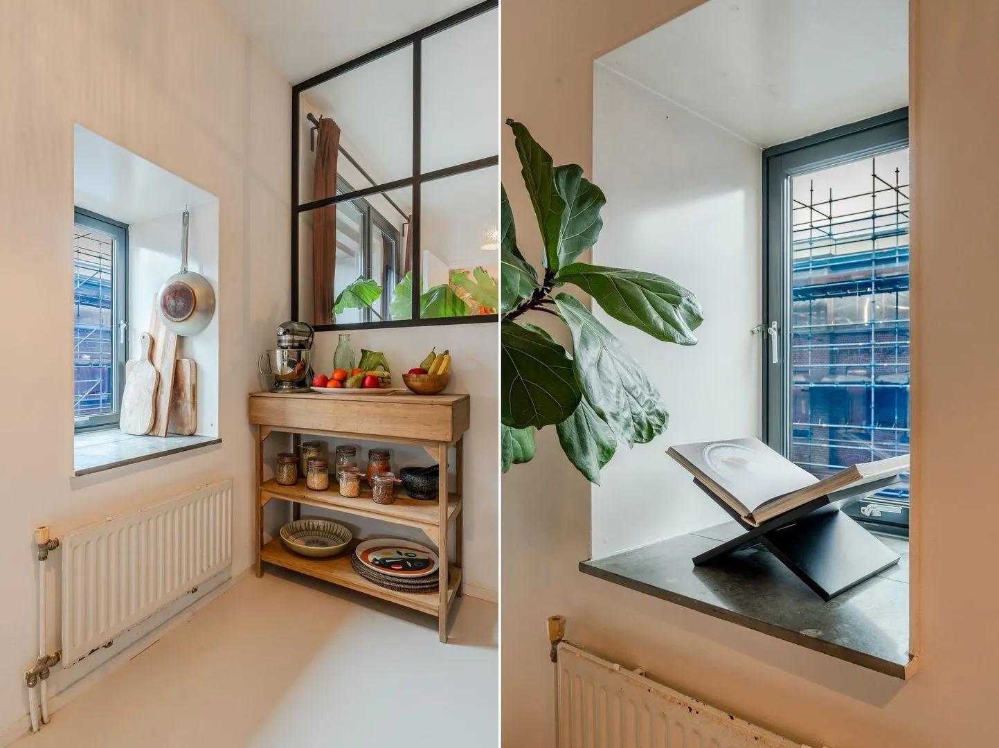Dit lichte 3-kamer hoekappartement in het iconische Pakhuis Oostenburg biedt een unieke combinatie van historisch karakter en modern comfort. Gelegen op de derde verdieping, prijken grote raampartijen en twee loggia’s die zorgen voor een overvloed aan natuurlijk licht. De ruime woonkamer met openslaande deuren leidt naar de eerste loggia, terwijl de halfopen keuken is voorzien van moderne inbouwapparatuur en een betonnen aanrechtblad.