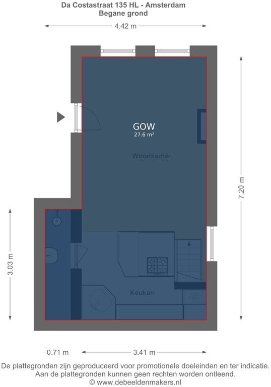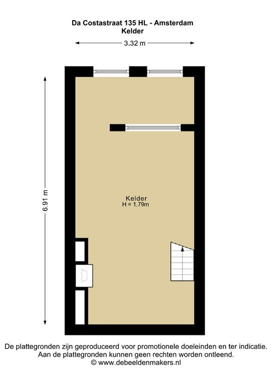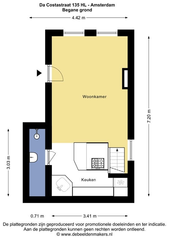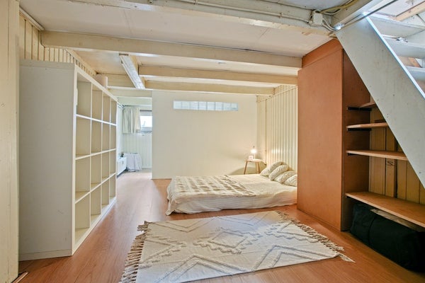 - De benedenwoning heeft een woonoppervlakte van 28 m² en beschikt over 2 kamers, waarvan 1 slaapkamer;