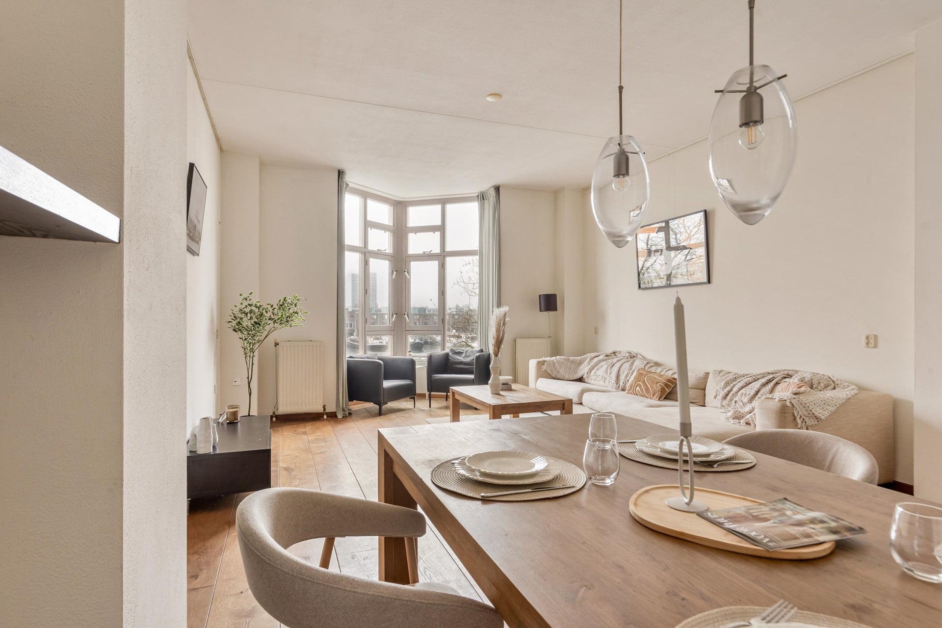 Dit royale dubbel bovenhuis aan de Zeeburgerkade 532 in Amsterdam biedt een fenomenaal uitzicht over de Entrepothaven. Gelegen in een voormalig pakhuis uit 1898, dat in 1990 volledig is vernieuwd en zijn monumentale details heeft behouden, geniet het van een unieke lichtinval door de hoge plafonds van ca. 3 meter en grote raampartijen. Op de eerste verdieping bevindt zich een hal met garderobe, een berging en een semi-open keuken van 12 m² met 6-pits gasfornuis. De indrukwekkende woonkamer van 33 m² biedt prachtig uitzicht op het water. Op de tweede verdieping zijn er twee ruime slaapkamers van respectievelijk 26,6 m² en 15,6 m², een badkamer en een separaat toilet. Bij de woning hoort een eigen parkeerplaats en externe berging van 5,1 m².