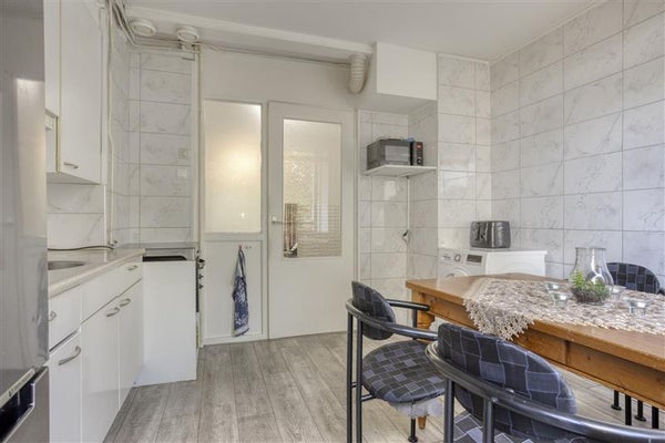 - De portiekflat heeft een woonoppervlakte van 65 m² en beschikt over 3 kamers, waarvan 2 slaapkamers;