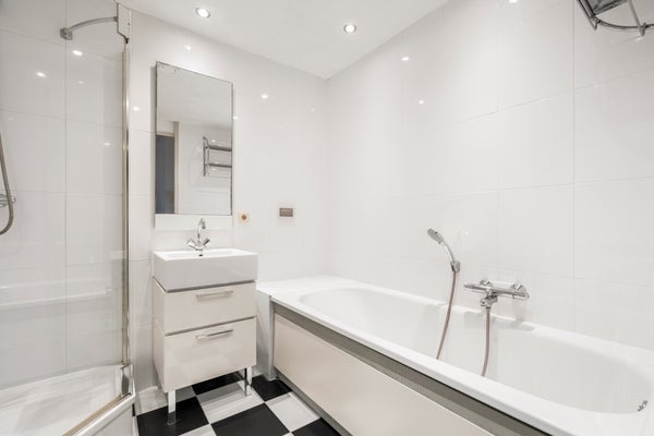 De woning beschikt over twee ruime slaapkamers, waarvan de master bedroom 21m² groot is. De badkamer is neutraal wit en voorzien van een douche, ligbad, wastafelmeubel en wasmachineaansluiting. Daarnaast is er een separaat toilet met fontein.