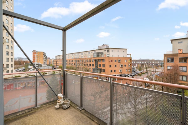 De doorzonwoonkamer straalt van het daglicht, er zijn twee royale slaapkamers, twee fijne balkons, een berging op de begane grond én extra bergruimte in het appartement zelf.