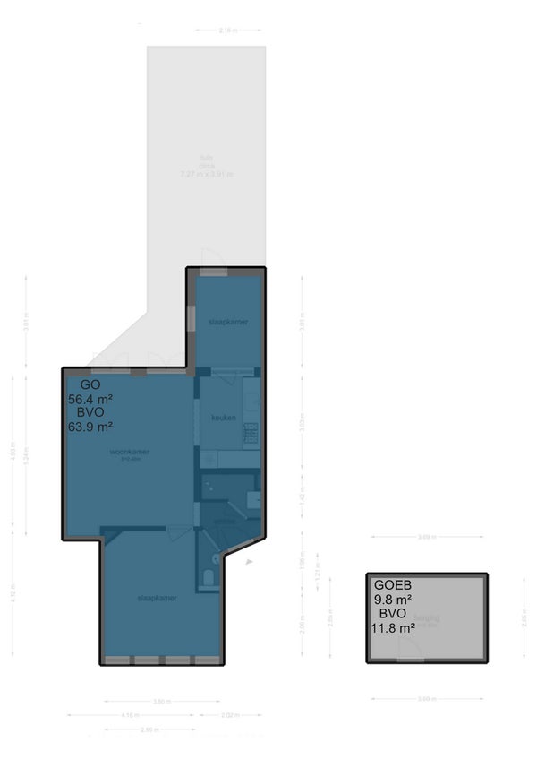• De benedenwoning heeft een woonoppervlakte van 56 m² en beschikt over 3 kamers, waarvan 2 slaapkamers;