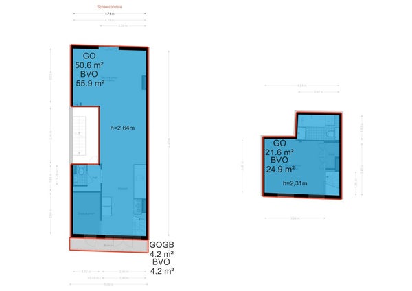 • De bovenwoning heeft een woonoppervlakte van 72 m² en beschikt over 2 kamers, waarvan 1 slaapkamer;
