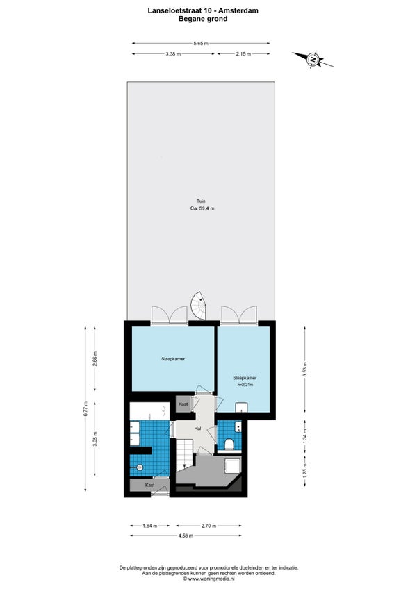 - Aanwezig (59 m², gelegen op het oosten)