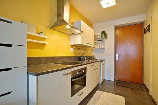 De woning is slim ingedeeld en biedt alles wat je nodig hebt. Dankzij de grote openslaande raampartij geniet je hier dagelijks van een fijne lichtinval, het mooie uitzicht en een prettige, rustige maar toch stadse woonomgeving.