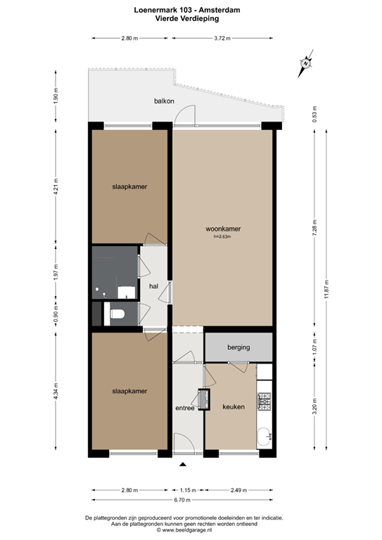 • De galerijflat heeft een woonoppervlakte van 79 m² en beschikt over 3 kamers, waarvan 2 slaapkamers;