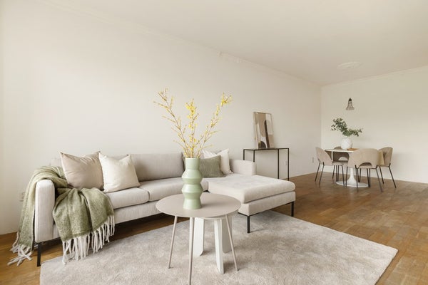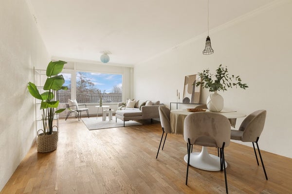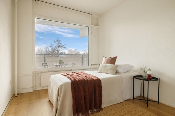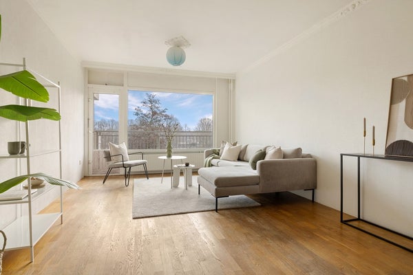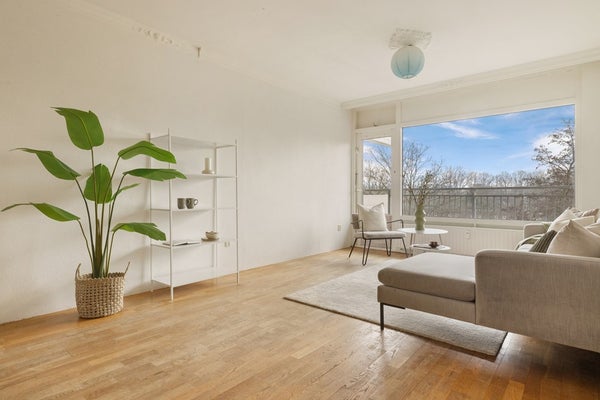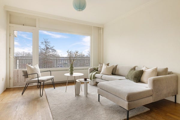 De lichte woonkamer vormt het hart van de woning en biedt toegang tot het ruime balkon van ca. 10 m², waar u heerlijk kunt genieten van de buitenlucht. Vanuit de woonkamer bereikt u een tweede hal, die toegang geeft tot de slaapvertrekken en de badkamer.