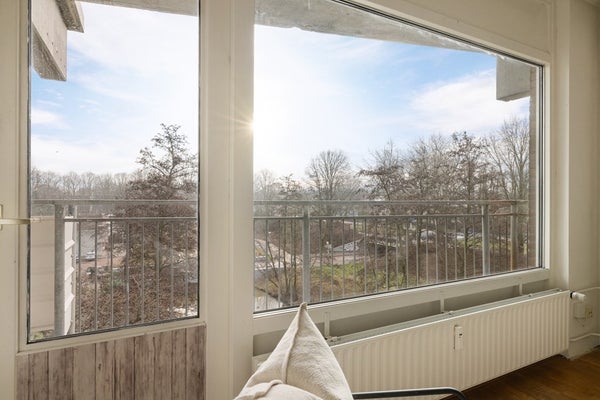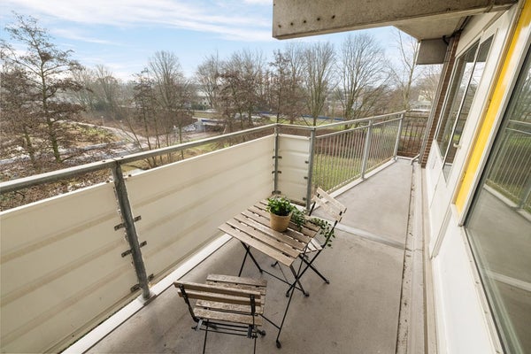 Fraai gelegen 3-kamer APPARTEMENT op de vierde etage met een RUIM BALKON van ca. 10 m², een EIGEN PARKEERPLAATS in de GARAGE, een praktische BERGING van ca. 5 m² én EEUWIGDUREND AFGEKOCHTE ERFPACHT.