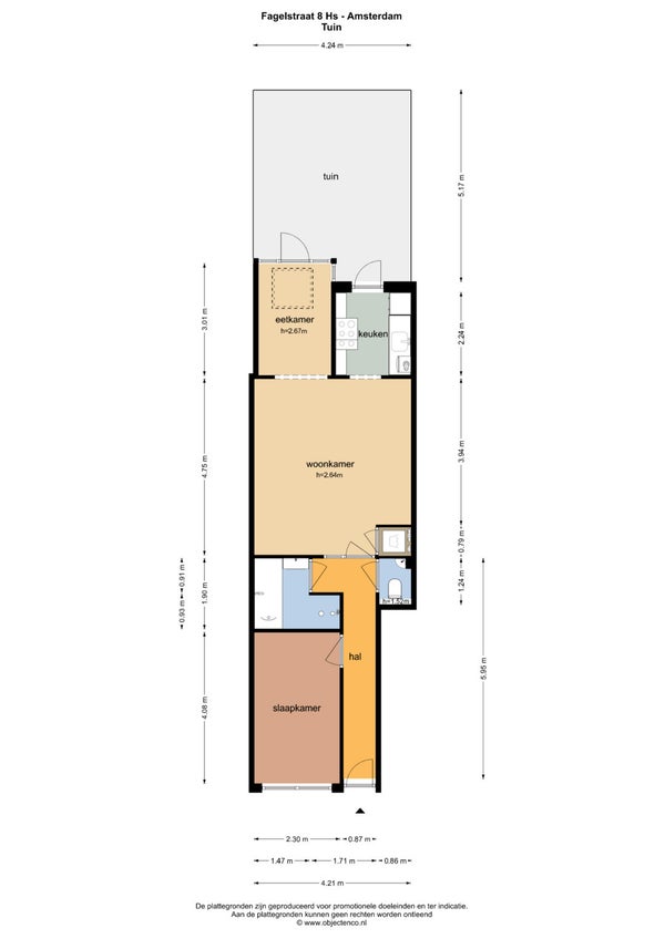 - Aanwezig (22 m², gelegen op het noordwesten)