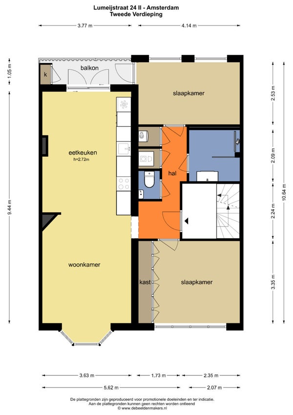 - De bovenwoning heeft een woonoppervlakte van 77 m² en beschikt over 3 kamers, waarvan 2 slaapkamers;