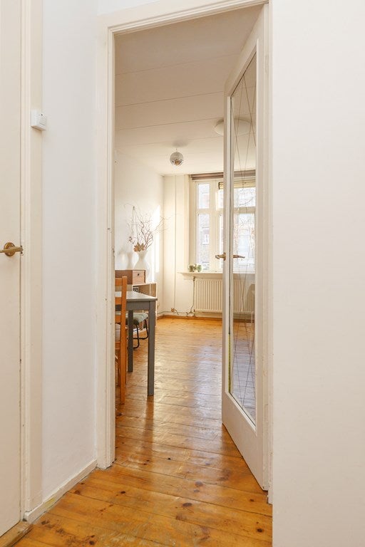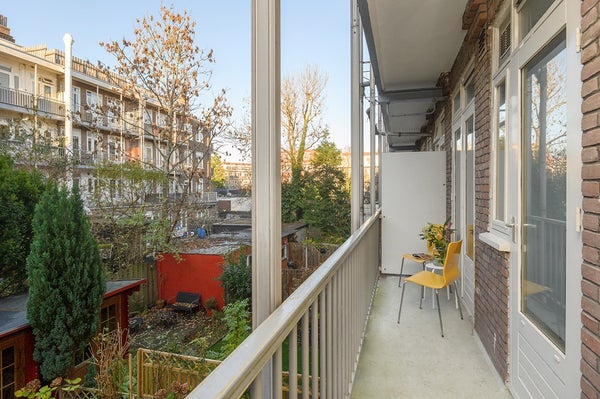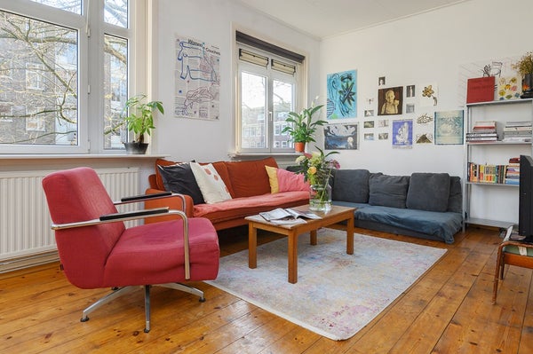 Located in the lovely Bos en Lommer area, between Westerpark and Erasmuspark, you will find this exceptionally bright and sunny three-room apartment with a lovely balcony, located on the first floor of the building. The apartment is situated on a charming street in the popular Bos en Lommer neighbourhood. The spacious attic storage space, belonging to the apartment, is located on the fourth floor.