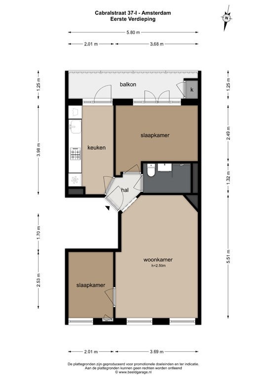 - De bovenwoning heeft een woonoppervlakte van 50 m² en beschikt over 3 kamers, waarvan 2 slaapkamers;