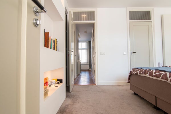 Located in a quiet street in the heart of the highly sought-after De Pijp district, this beautifully designed apartment of approximately 92 m² is spread over the top two floors of a characteristic early 20th-century building. The property features two bedrooms, two bathrooms, a sunny balcony and a spacious south-facing roof terrace – a rare combination in this location.