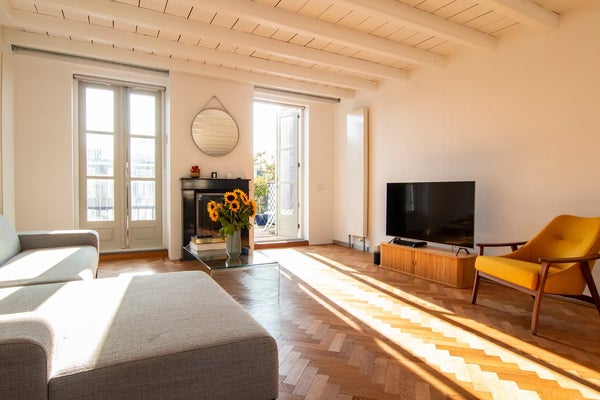 The apartment is in excellent condition and finished to a high standard. Stylish details such as exposed ceiling beams, a herringbone wooden floor and a tasteful interior design including cosy fire place give the home a warm and luxurious feel.