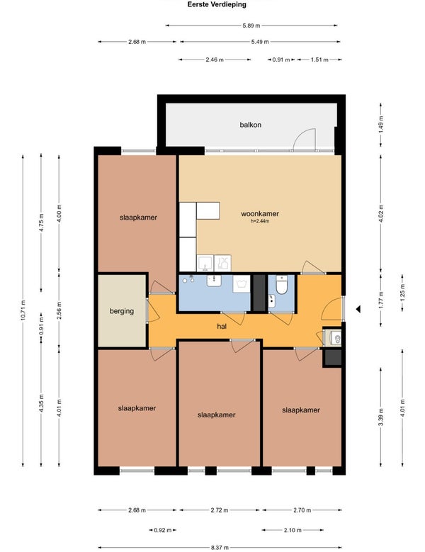 • De portiekflat heeft een woonoppervlakte van 89 m² en beschikt over 5 kamers, waarvan 4 slaapkamers;