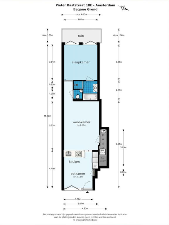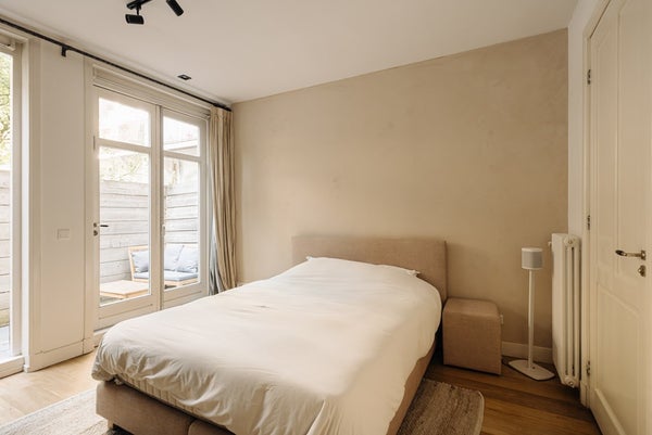 - De benedenwoning heeft een woonoppervlakte van 59 m² en beschikt over 2 kamers, waarvan 1 slaapkamer;