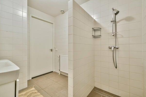 De badkamer is netjes afgewerkt en uitgerust met een inloopdouche en een wastafel met meubel. Daarnaast beschikt de woning over een separaat toilet, bereikbaar vanuit de hal. De gehele woning is voorzien van een houten vloer met vloerverwarming.