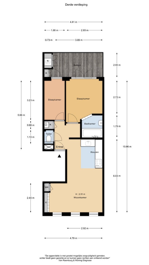 - De galerijflat heeft een woonoppervlakte van 47 m² en beschikt over 3 kamers, waarvan 2 slaapkamers;