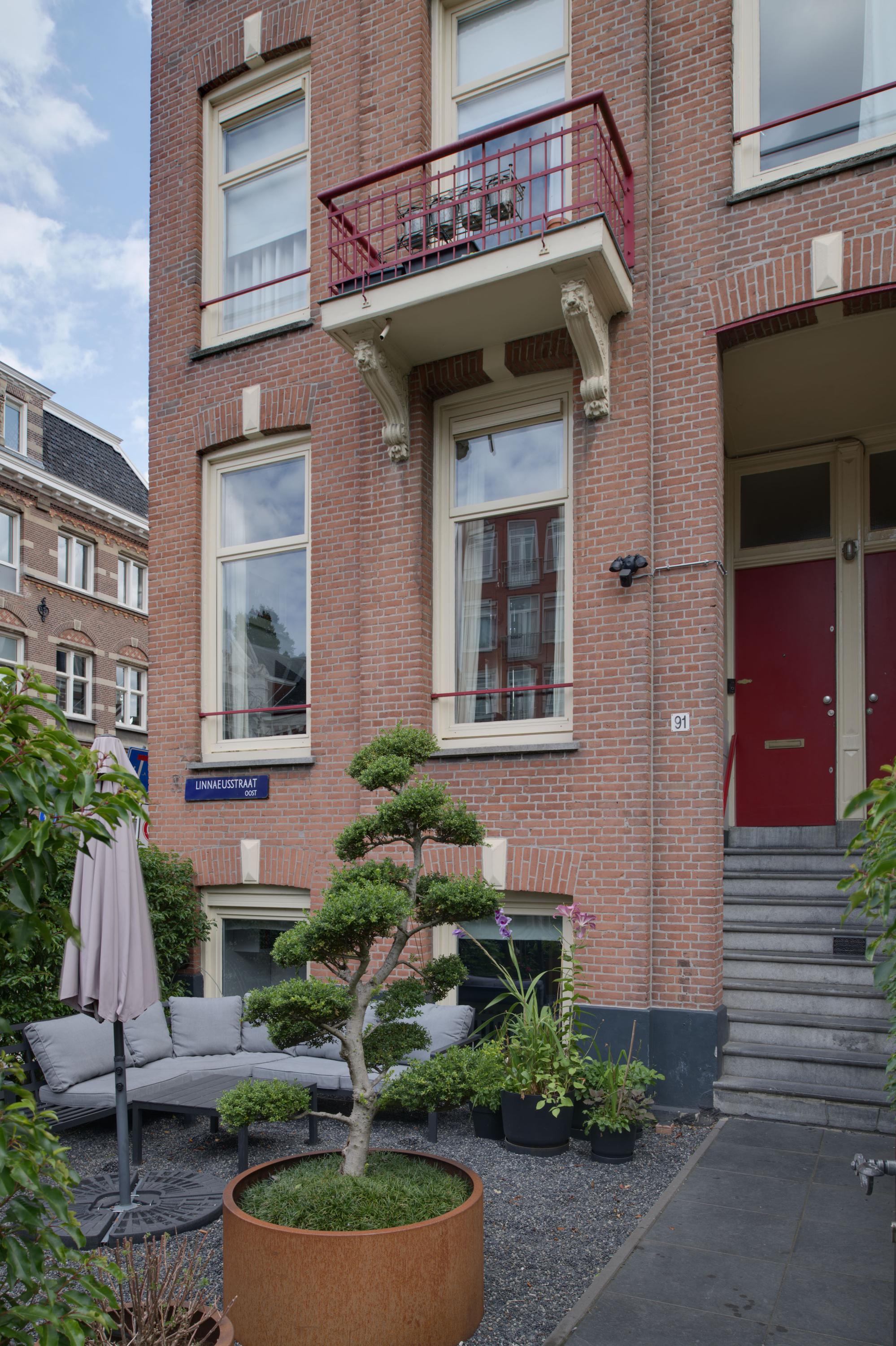Wonen in Amsterdam Oost, op een toplocatie direct aan het Oosterpark. Aan de hoek van de Linnaeusstraat en Oetewalerstraat ligt dit exclusieve loft-style appartement van ca. 133 m². Dit hoogwaardig gerenoveerde dubbel benedenhuis is verdeeld over de bel-étage en het souterrain en beschikt over een fijne voortuin van ca. 24 m² en een externe berging van ca. 7 m².