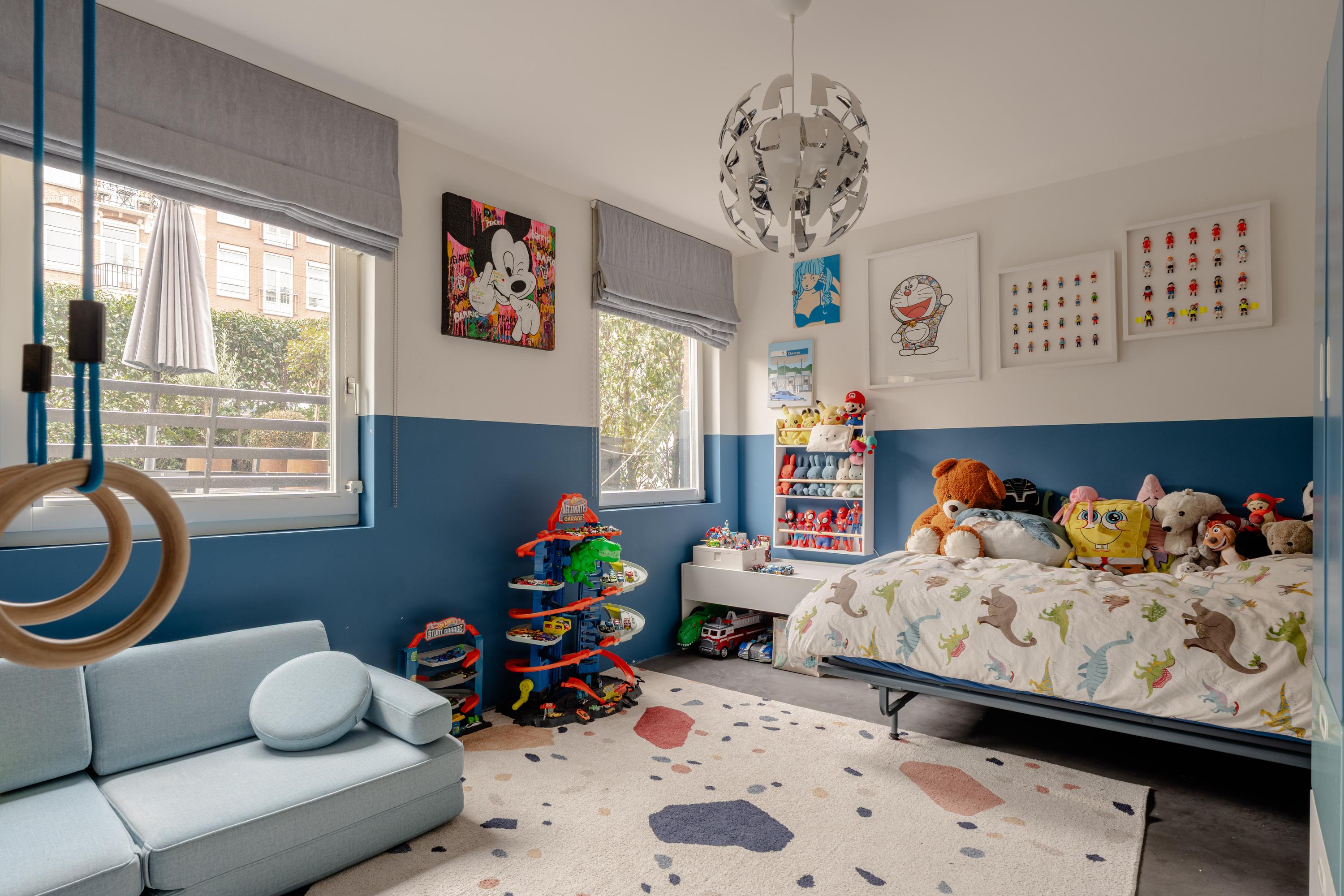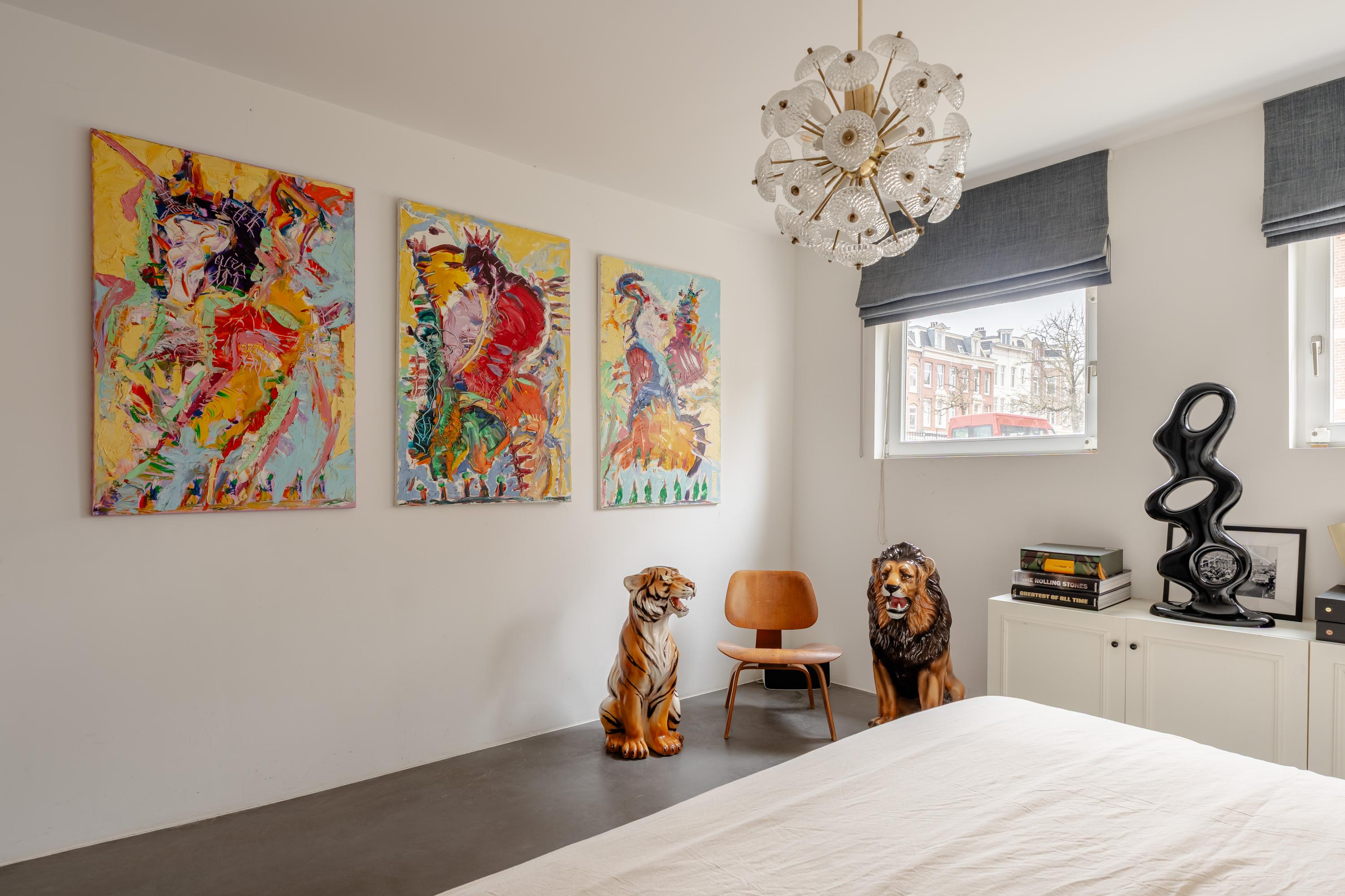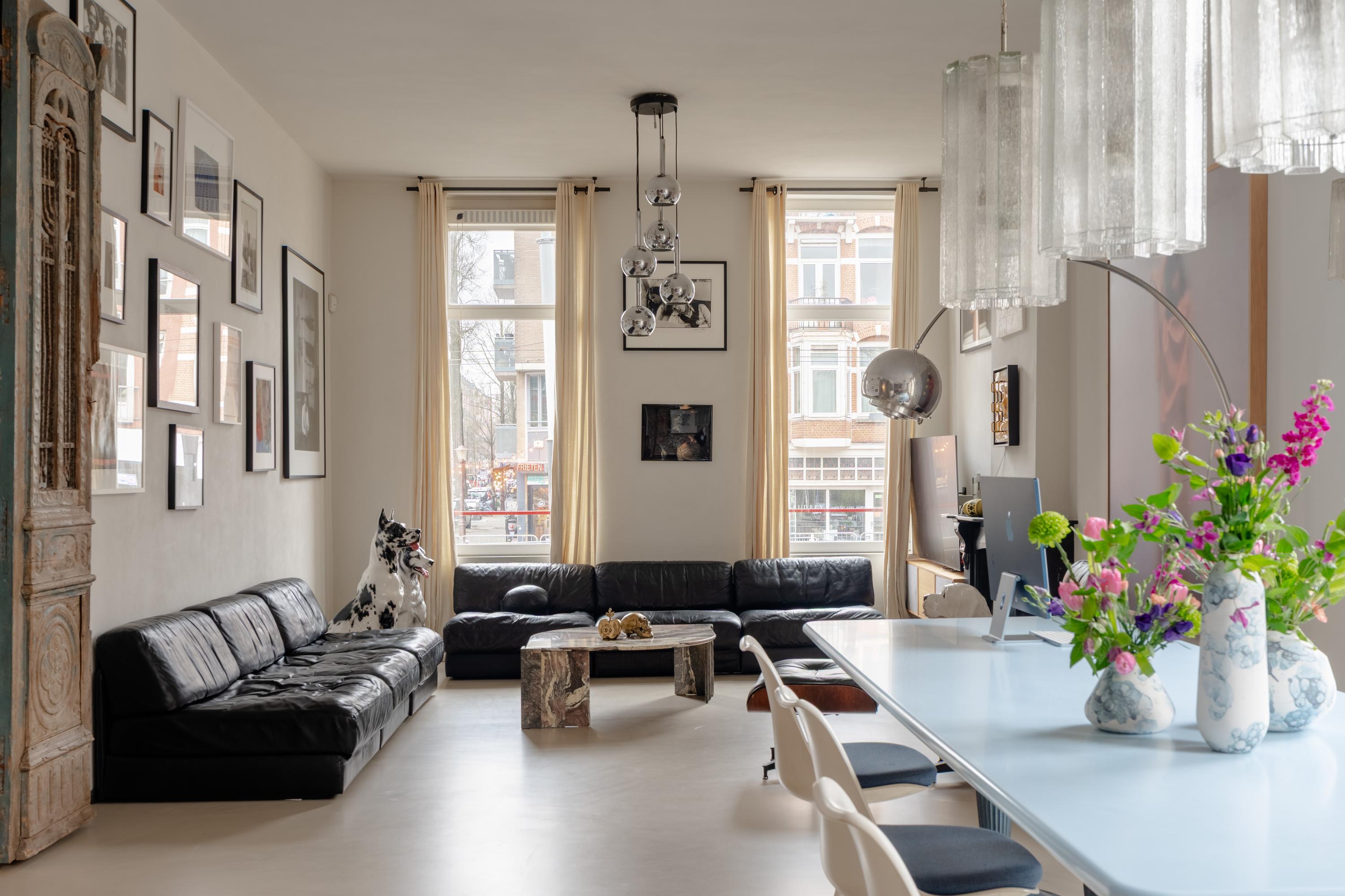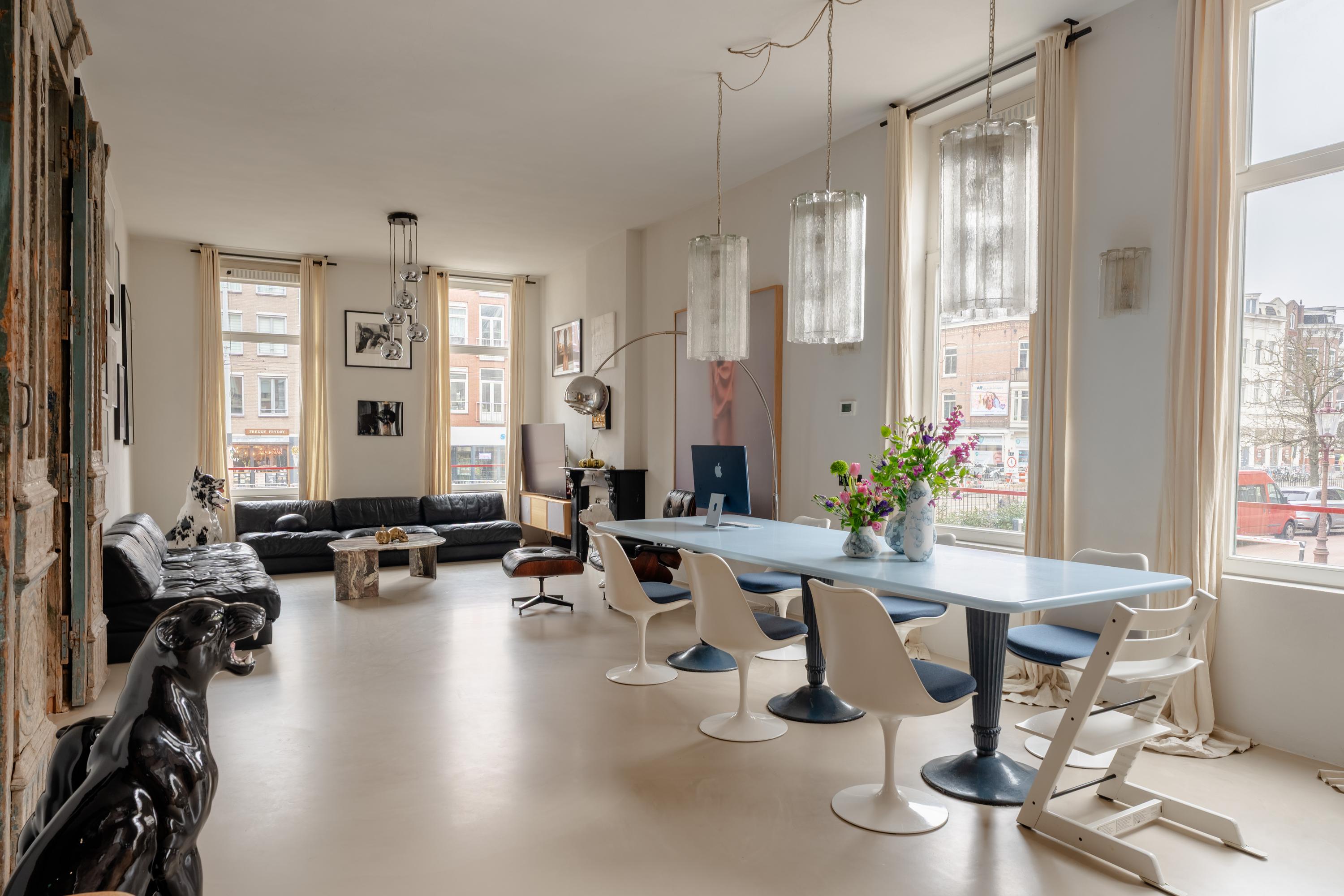 De bel-étage heeft een eigen entree, een hal met garderobekast en gastentoilet. De brede woon- en eetkamer met luxe industriële open keuken en hoge plafonds biedt een loft-uitstraling. Het souterrain heeft drie ruime slaapkamers en een luxe badkamer met vrijstaand ligbad. Dit appartement is perfect gelegen dichtbij het Oosterpark, met uitstekende bereikbaarheid naar tram- en metrostations.