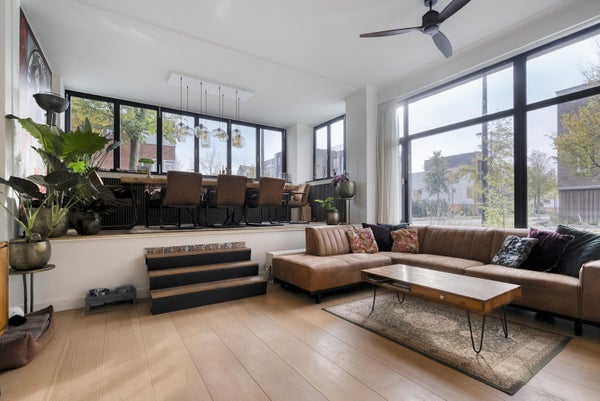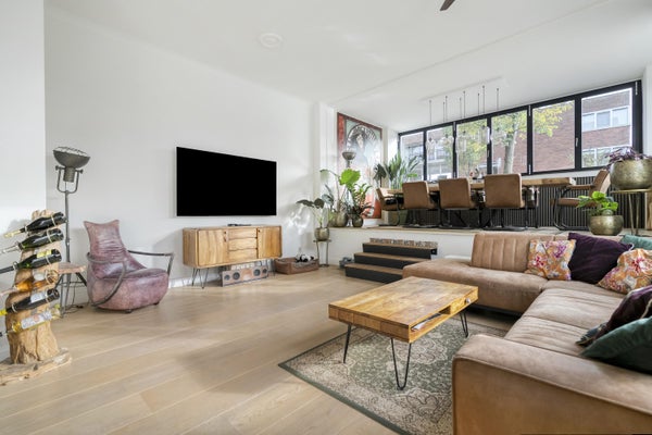 Ontdek deze ruime benedenwoning van ca. 119 m², met eigen entree en een privé-parkeerplaats. In 2022 is het voormalige balkon omgevormd tot een lichte leefruimte met grote harmonicaramen. De woning beschikt over hoge plafonds en een moderne keuken met inbouwapparatuur, waaronder een inductiekookplaat en een vaatwasser, allemaal recent vernieuwd. De ruime woonkamer biedt veel licht dankzij de ramen aan beide zijden. Er zijn twee comfortabele slaapkamers, ideaal voor diverse indelingen. De luxe badkamer is onlangs vernieuwd met grote marmeren tegels en heeft zowel een vrijstaand bad als een inloopdouche. In de onderbouw vind je een berging en de woning ligt in een groene omgeving met voldoende voorzieningen en goede toegang tot het openbaar vervoer.