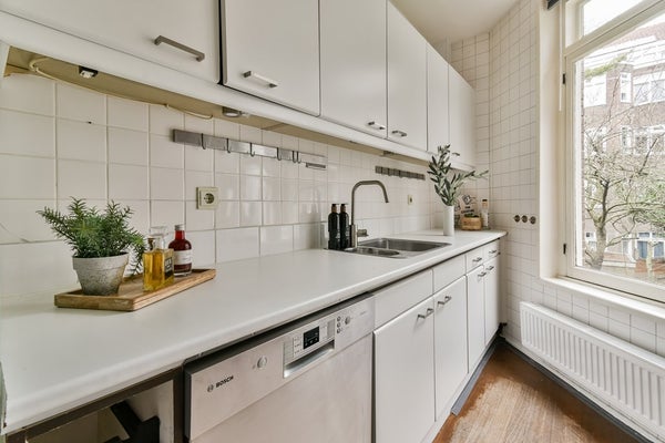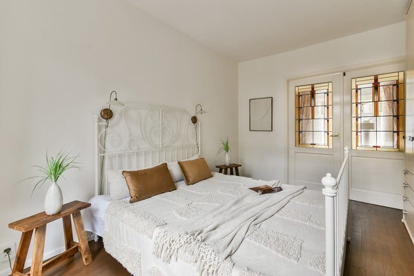 Dit sfeervolle twee-slaapkamerappartement met mogelijkheid tot het creëren van een derde slaapkamer is gelegen op de eerste verdieping en valt direct op door de hoge plafonds, originele paneeldeuren en prachtige authentieke glas-in-looddetails in zowel de deuren als de bovenlichten van de ramen. In combinatie met de houten vloer, het zijzicht richting het water en de rustige ligging biedt deze woning een charmant en ruimtelijk geheel met veel potentie, midden in de geliefde Stadionbuurt.