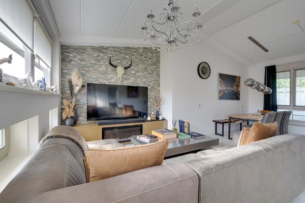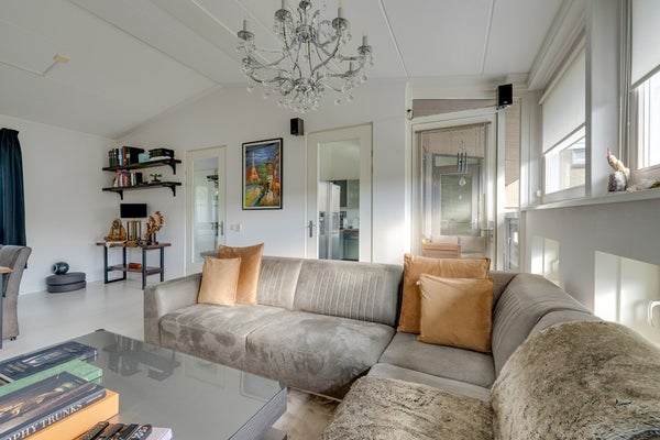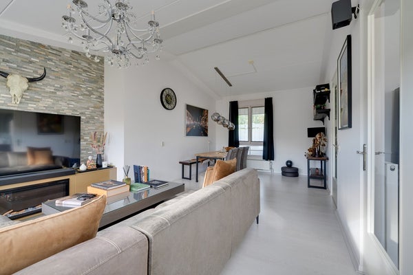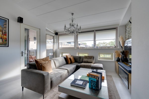 - Royale woonkamer met grote raampartijen, veel lichtinval en toegang tot het zonnige balkon.