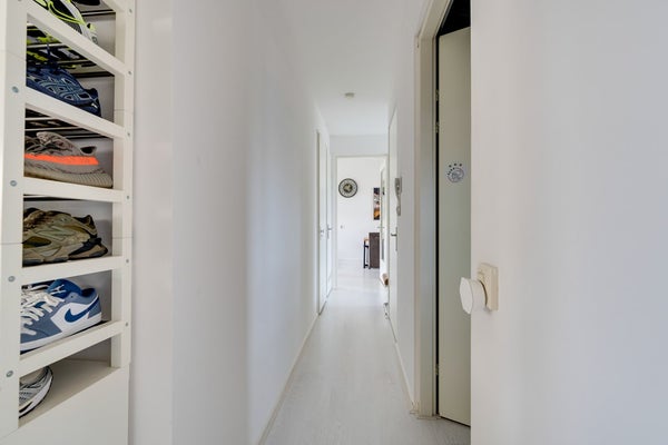 - Ruime ontvangsthal met videofoon, moderne toiletruimte, meterkast, opstelplaats voor wasmachine/droger en stadsverwarming.