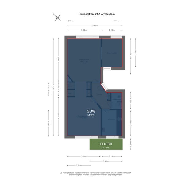 - De tussenverdieping heeft een woonoppervlakte van 55 m² en beschikt over 2 kamers, waarvan 1 slaapkamer;