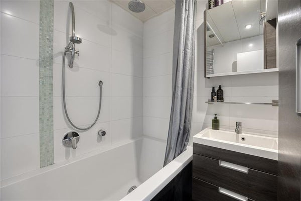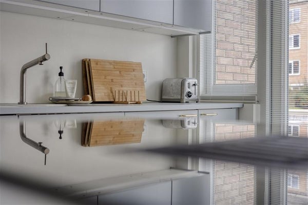 Je stapt binnen in een lichte, tuingerichte woonkamer die direct de toon zet. De strakke gietvloer door de hele woning geeft het geheel een moderne, ruimtelijke uitstraling. De open keuken aan de voorzijde is volledig uitgerust met luxe inbouwapparatuur en geeft toegang tot een balkon. De nette badkamer beschikt over een royaal ligbad met regendouche. Aan de voorzijde vind je een ruime slaapkamer met de badkamer en een apart toilet met fonteintje direct ernaast. Aan de tuinzijde liggen nog twee ruime slaapkamers, waarvan één directe toegang biedt tot het absolute hoogtepunt van deze woning. De woning is bovendien geluidsarm — heerlijk rustig wonen dus.