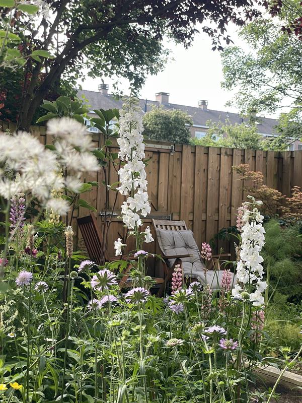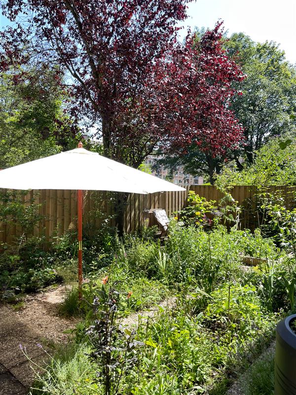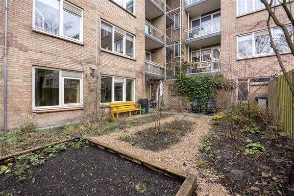 De prachtig aangelegde tuin is met 93 m² nog groter dan het appartement zelf — een absolute zeldzaamheid in Amsterdam. Op het zuidoosten gelegen, geniet je hier van zon van ’s ochtends vroeg tot in de late middag en van een heerlijke beschutte sfeer op warme avonden.