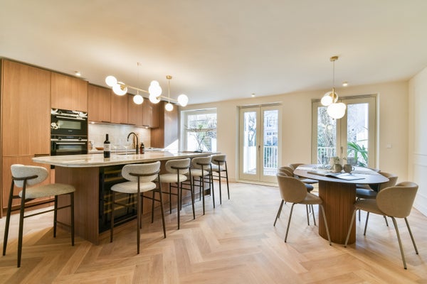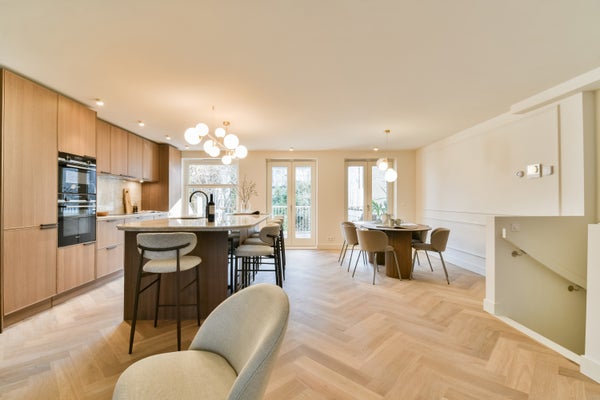 - Beautiful wooden herringbone parquet flooring throughout