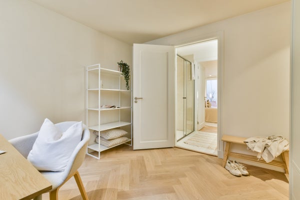 - Door het gehele appartement ligt een fraaie houten visgraat parketvloer
