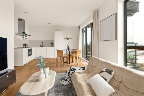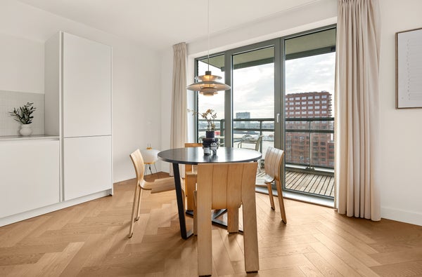 The living room is wonderfully spacious and bright thanks to large windows on both the front and side façades. From here, you enjoy stunning views over the IJ and the surrounding area.