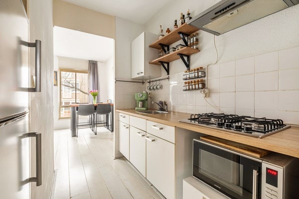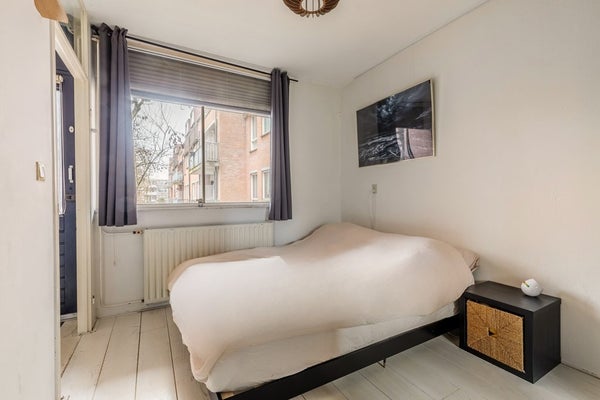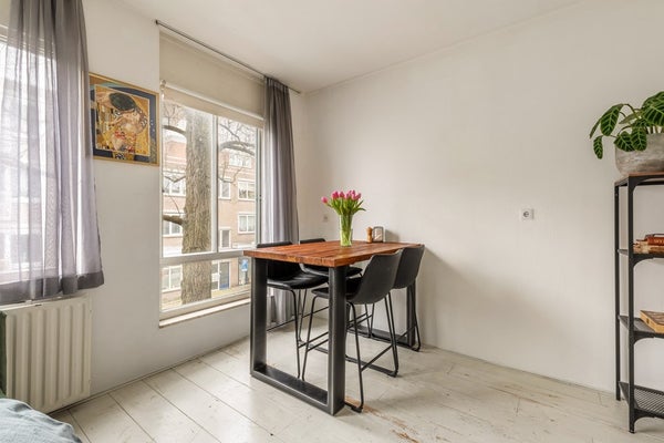 Situated in a fantastic location close to the Westerpark, this bright and efficiently laid-out apartment is located on the first floor of a small-scale apartment complex. A unique location where tranquility and urban living come together. The apartment features a neutral wooden floor and neatly finished walls. Thanks to its southwest-facing orientation, the living room enjoys an abundance of natural light throughout the day, creating a warm and pleasant atmosphere.