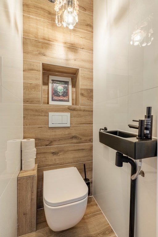 De slaapkamer is een fijne, vierkante ruimte en biedt directe toegang tot de badkamer. De badkamer is in 2021 vernieuwd en is modern uitgevoerd, volledig betegeld en voorzien van een inloopdouche met glazen wand en een wastafelmeubel. Het separate toilet bevindt zich in de hal.