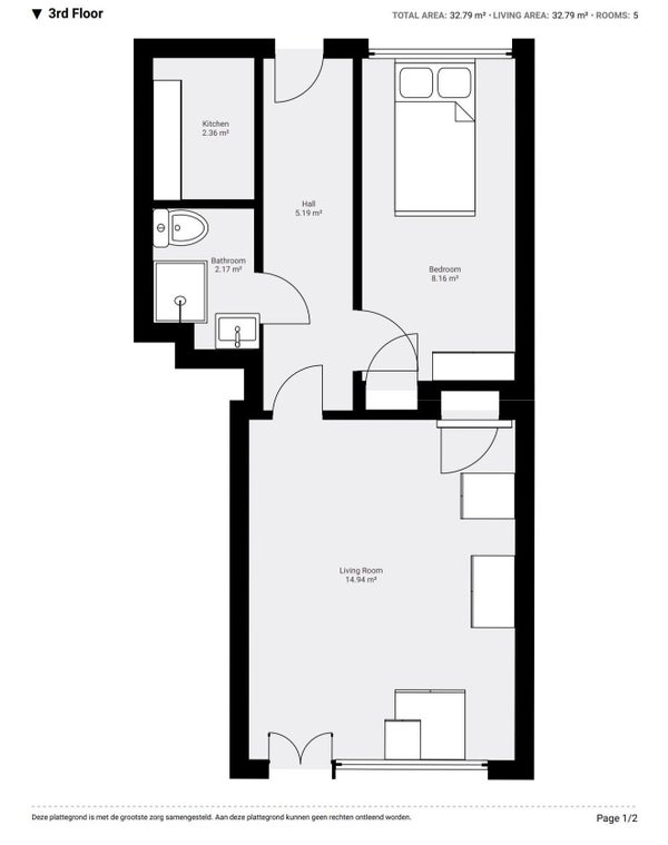 - De tussenverdieping heeft een woonoppervlakte van 33 m² en beschikt over 2 kamers, waarvan 1 slaapkamer;