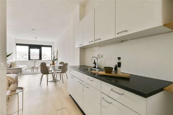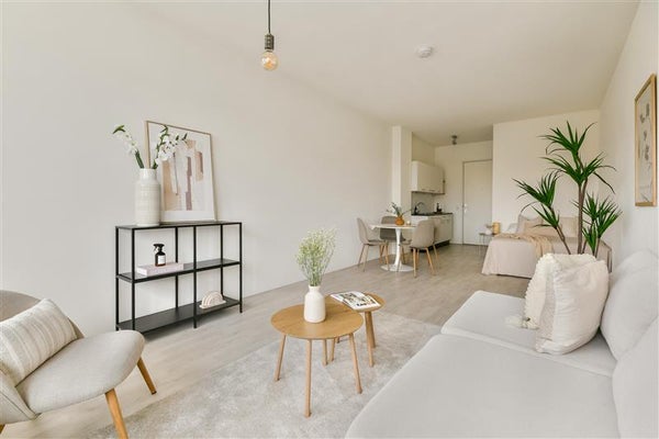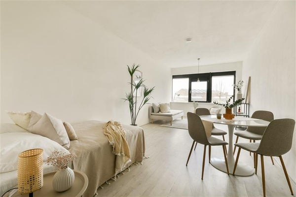 Dit appartement van 34 m² bewijst dat kleiner wonen niet ten koste hoeft te gaan van comfort. Zodra je binnenstapt, word je verwelkomd door de sfeervolle woonkamer die door de ramen badend in licht staat. Hier voel je direct hoe het daglicht een warm en open karakter aan de ruimte geeft. Ideaal voor een rustige avond thuis óf om vrienden te ontvangen voor een gezellige borrel.