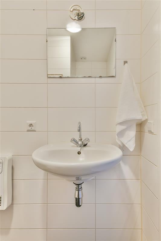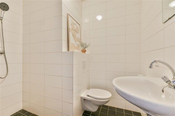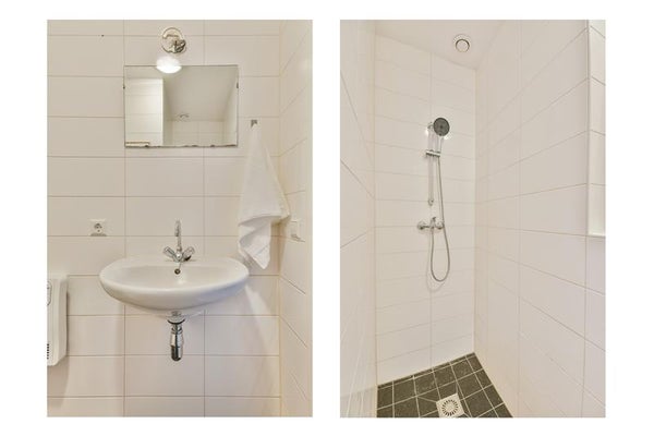 Ook de badkamer is keurig afgewerkt en uitgerust met wastafel, toilet en douche – compact, maar uiterst functioneel. Wat betreft opbergruimte hoef je je geen zorgen te maken. Hoewel het appartement in omvang bescheiden is, is de ruimte slim benut met voldoende mogelijkheden om al je spullen overzichtelijk op te bergen.