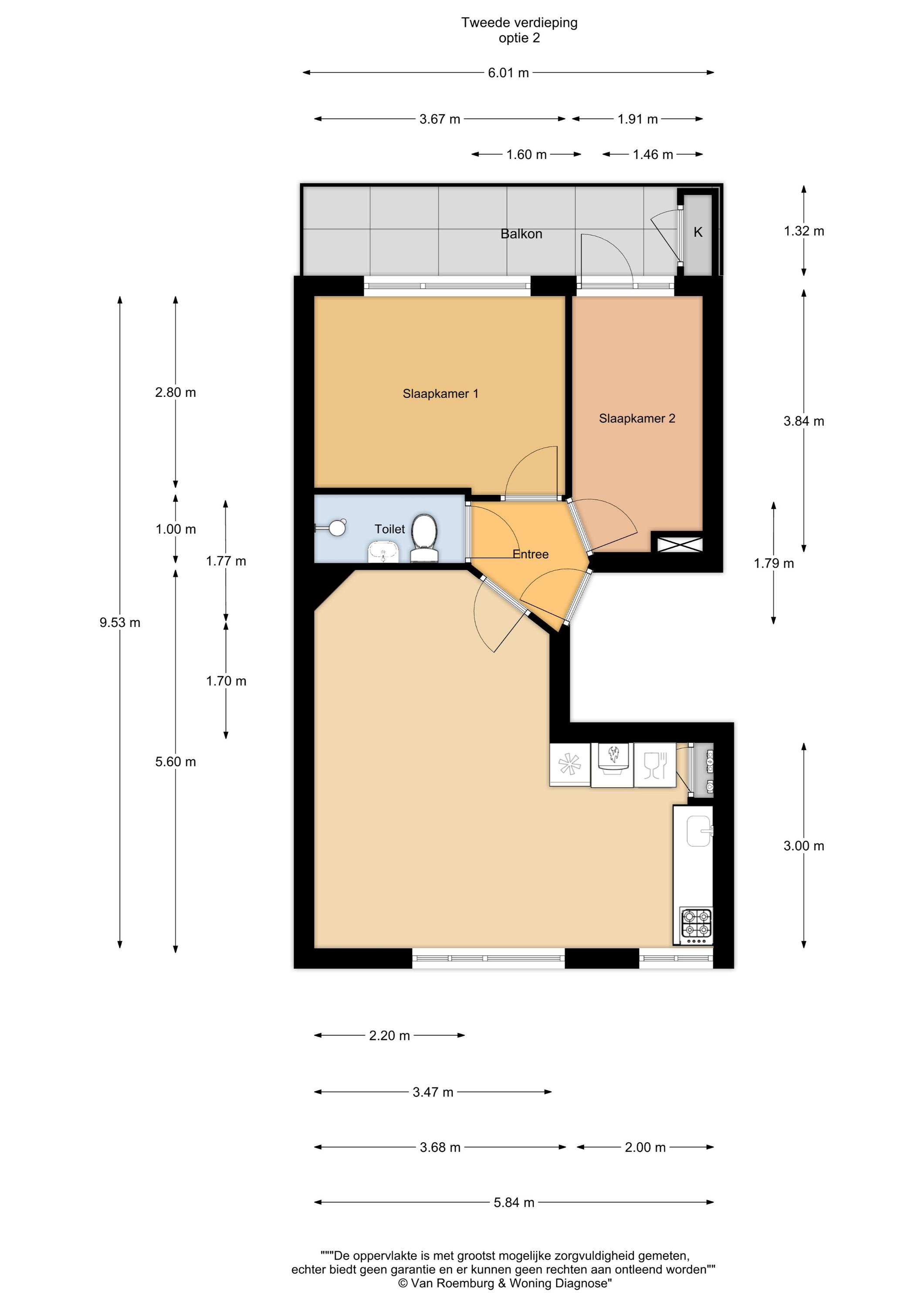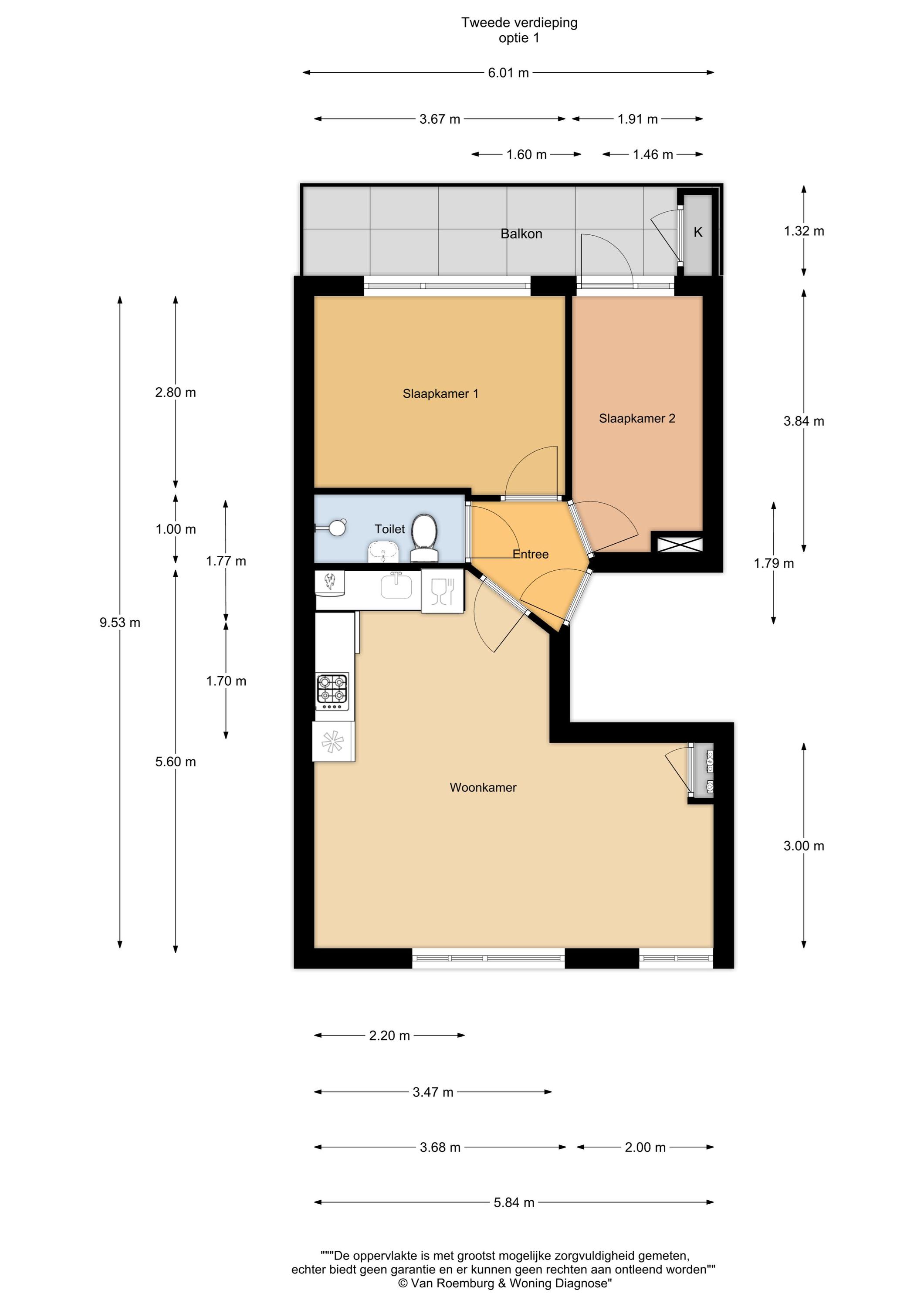 - De galerijflat heeft een woonoppervlakte van 50 m² en beschikt over 3 kamers, waarvan 2 slaapkamers;