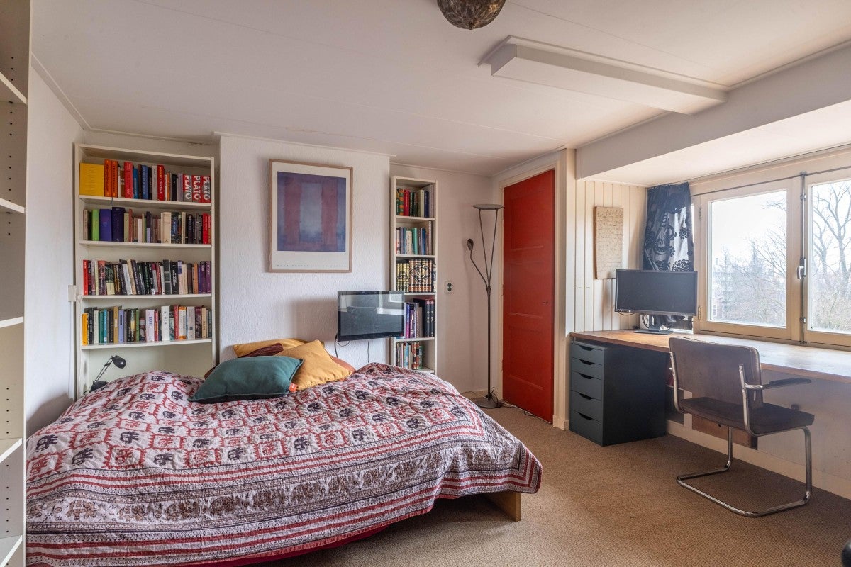 Woningzoekers opgelet! Dit charmante appartement van circa 78 m² is gelegen op eigen grond met prachtig uitzicht op het Vondelpark. Gevestigd op de tweede verdieping, beschikt het over een ruime slaapkamer en een zolderverdieping met nog een slaapkamer en berging. U komt binnen via een nette entree met toegang tot de centrale hal en de woonkamer aan de voorzijde, die dankzij grote raampartijen uitkijkt op het park. De authentieke keuken en de eerste slaapkamer bevinden zich aan de achterzijde, met toegang tot het zuidwesten gelegen balkon. De badkamer is uitgerust met een douche, toilet en wastafel. De actieve VvE heeft servicekosten van € 129 per maand. Met uitstekende bereikbaarheid en voorzieningen in de buurt, is dit appartement ideaal voor wonen en werken.