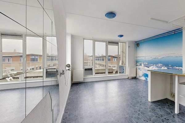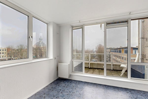 Via het nette trappenhuis met daglicht kom je op de vierde en bovenste verdieping. Het is hier heerlijk wonen zonder bovenburen. Bij binnenkomst in de woonkamer met open keuken heb je een fantastisch, bijna panoramisch uitzicht over het scheepvaartmuseum met daarachter het Oosterdok, de Oosterkerk tot aan de molen van Oost (De Gooyer). Vanuit de woonkamer stap je zo het balkon op waar je naast het mooie uitzicht van de ochtendzon kan genieten.