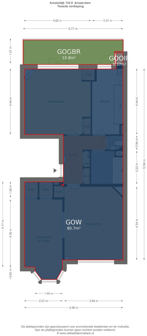 - De bovenwoning heeft een woonoppervlakte van 81 m² en beschikt over 3 kamers, waarvan 2 slaapkamers;